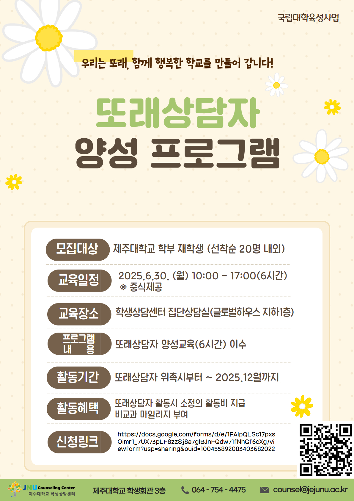 대학생 또래상담자 양성 프로그램 안내입니다.